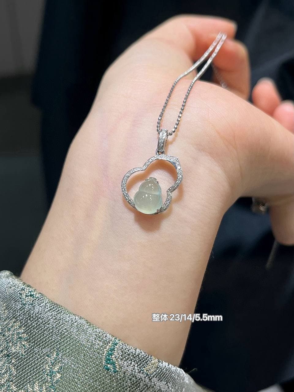 葫芦在传统设计中常常与保佑平安、辟邪驱邪的意义相关,而“冰透”可能让整个设计更显现代感,结合了传统与时尚,带有一丝梦幻般的质感。如果是透明度极高的宝石雕刻成葫芦形状,佩戴者不仅可以享受其独特的美感,也能感受到这种文化象征带来的好运。